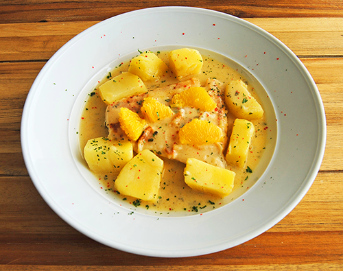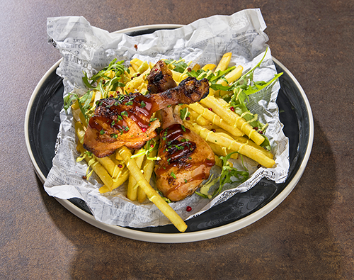 batak, pileća prsa, vratina, pljeskavica mahune, prženi krumpir